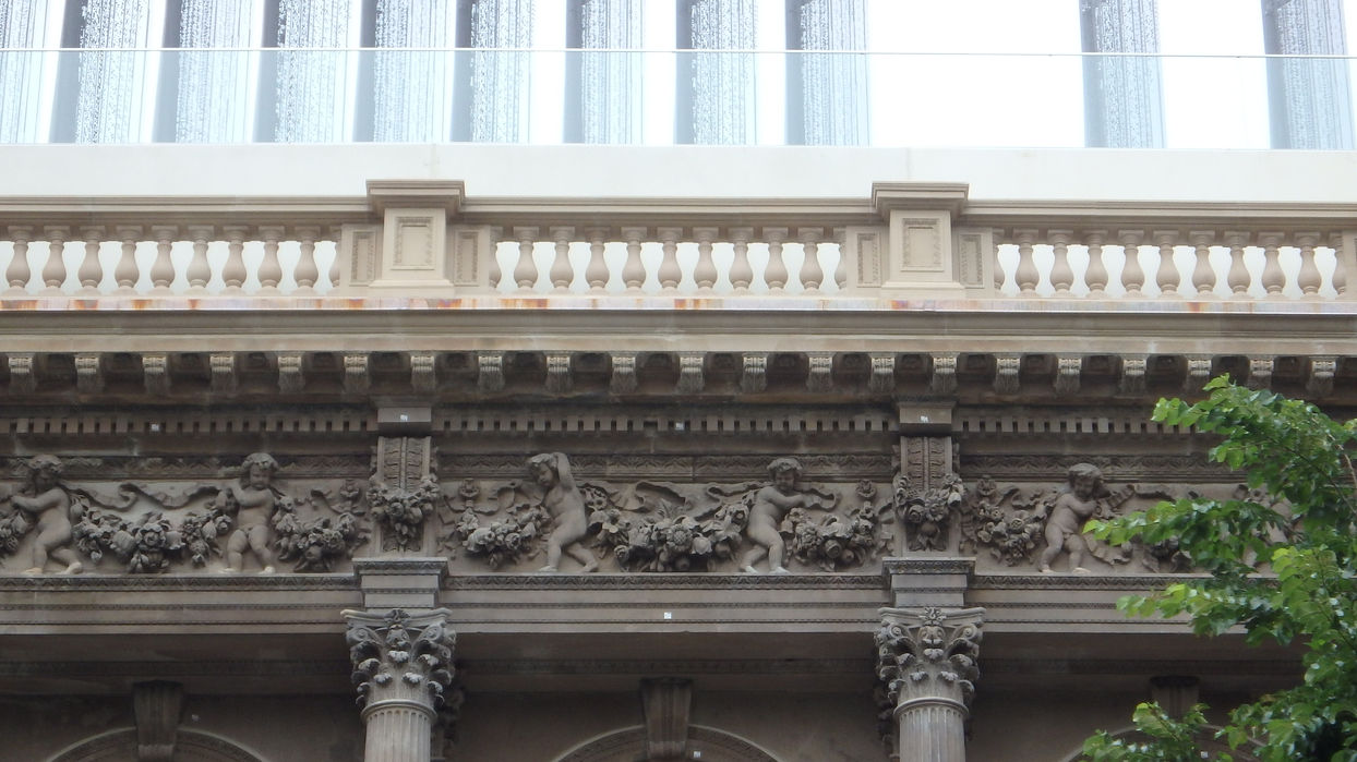 The Former Bank of NSW Facade, now part of the Faculty of Architecture, Building and Planning at the University of Melbourne, is an interesting example of how fragments of built heritage can be successfully conserved and re-imagined in a new context.